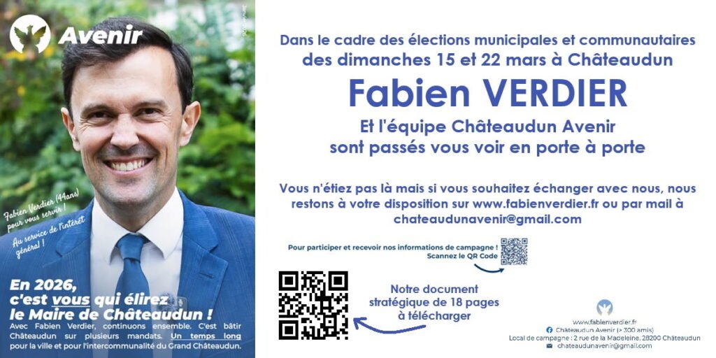 L’avenir de Châteaudun se construit et se construira sur le temps long, par étapes, dans la continuité. Il suppose une vision claire, une méthode rigoureuse et un engagement sincère au service de l’intérêt général.
